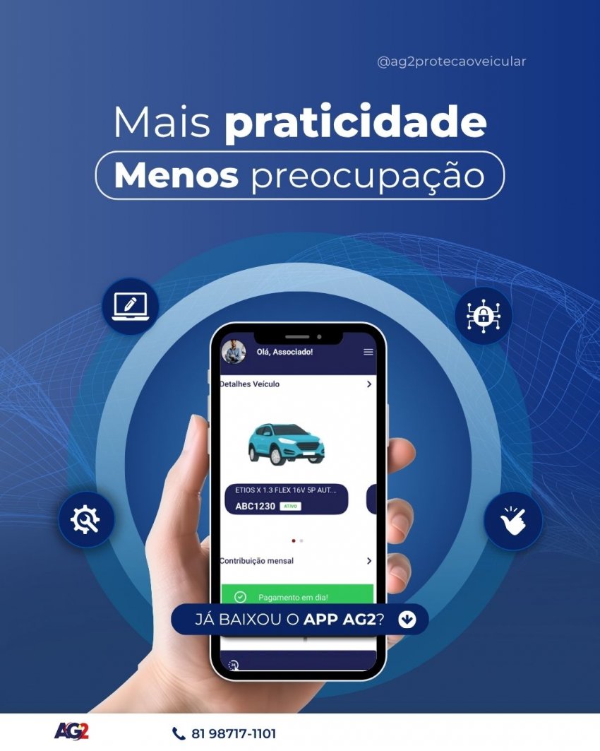 Sabia que você pode ter a AG2 na palma da sua mão? Baixe agora nosso aplicativo e desfrute da conveniência de ter sua Proteção aonde você estiver.